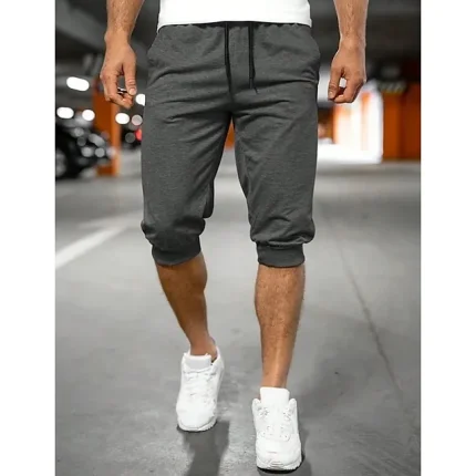 Men’s Sweatpants Joggers Capri Pants Drawstring Elastic Waist Plain Comfort Breathable Outdoor Daily Going out 100% Cotton Fashion Casual Black Light Grey