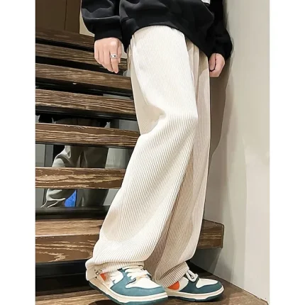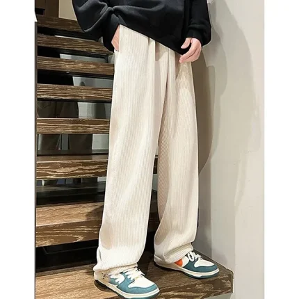 Men’s Corduroy Pants Trousers Straight Leg Sweatpants Pocket Drawstring Elastic Waist Plain Comfort Breathable Outdoor Daily Going out Fashion Casual Black Khaki
