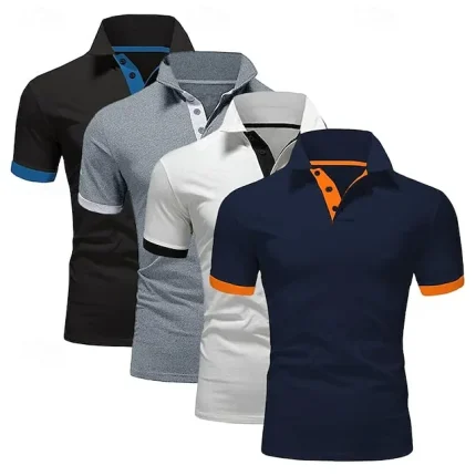 4 Pack Men’s Polo T-Shirt Golf Shirt Casual Sports Workwear Office Short Sleeve Summer Regular Fit Red White Blue Orange Sky Blue Gray Black Navy Blue Pink Green Classic Polo Shirt