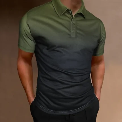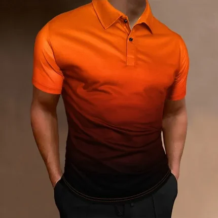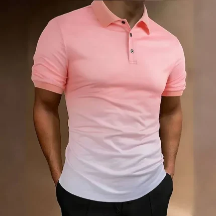 Men’s Button Up Polos Golf Shirt Casual Holiday Lapel Short Sleeve Fashion Basic Gradient Button Summer Regular Fit Yellow Pink Green Button Up Polos