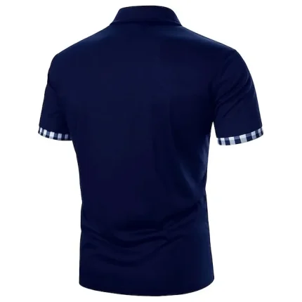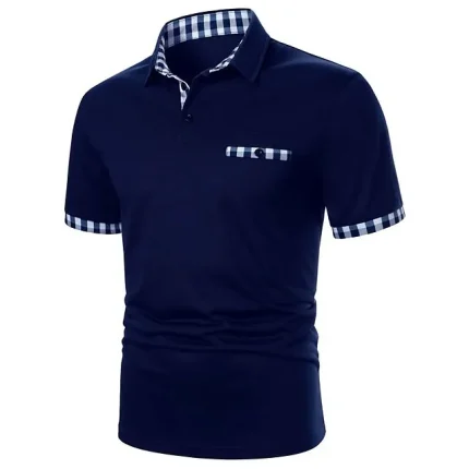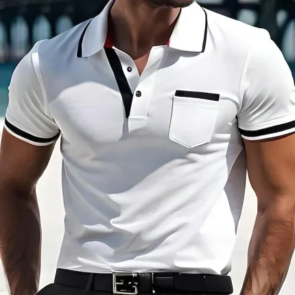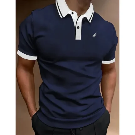 Selling Points 1. Gender: Men’s 2. Tops Type: Polo Shirt 3. Neckline: Lapel 4. Design: Patchwork 5. Sleeve Length: Short