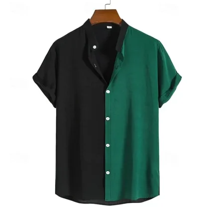 Men’s Button Up Shirt Casual Shirt Summer Shirt Bowling Shirt Red & White Green khaki Short Sleeve Color Block Button Down Collar Hawaiian Holiday Patchwork Clothing Apparel Fashion Casual Comfortable