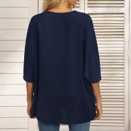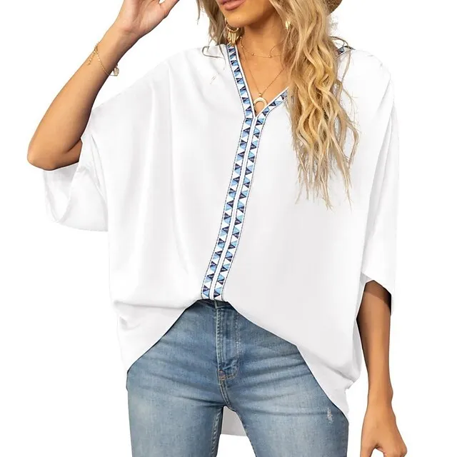 Women's Blouse Plain Casual Black White Royal Blue Patchwork Long Sleeve Elegant Casual V Neck Regular Fit