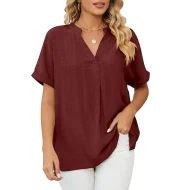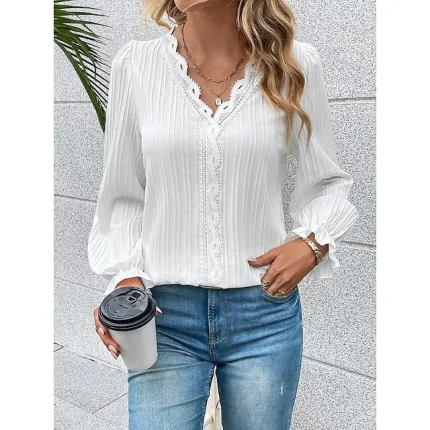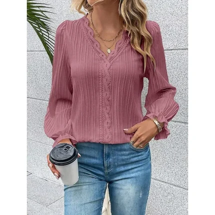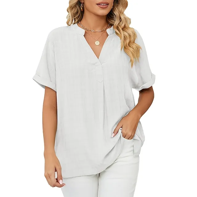 Blouse Women’s claret Black White Solid / Plain Color Daily Elegant Fashion Basic V Neck Regular Fit S