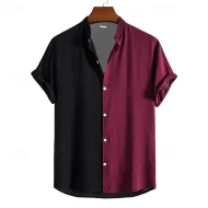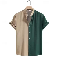 Men’s Button Up Shirt Casual Shirt Summer Shirt Bowling Shirt Red & White Green khaki Short Sleeve Color Block Button Down Collar Hawaiian Holiday Patchwork Clothing Apparel Fashion Casual Comfortable