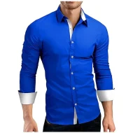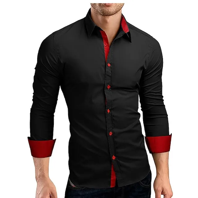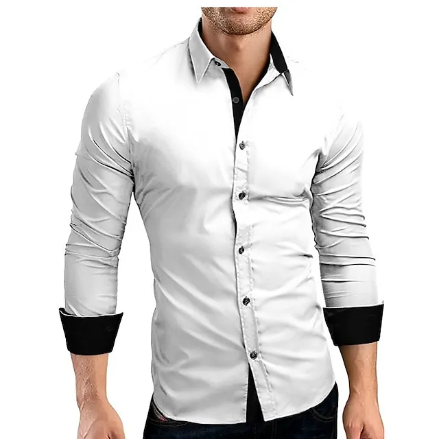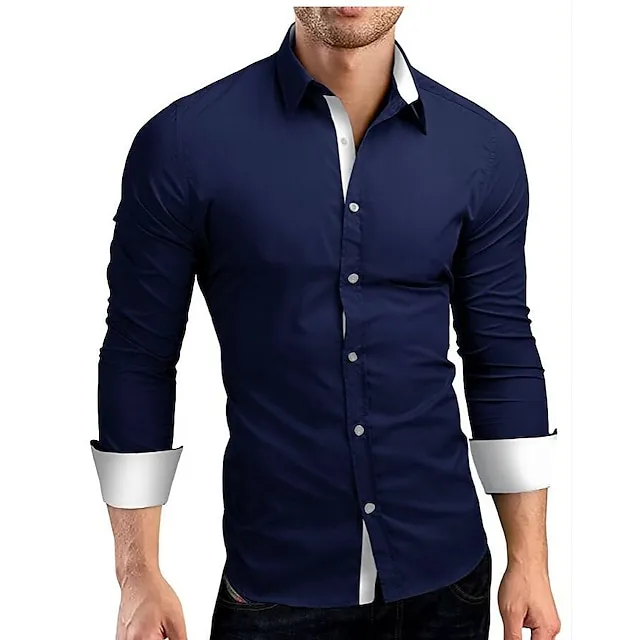 Men’s Dress Shirt Button Up Shirt Collared Shirt Black And White Sapphire Navy Long Sleeve Plain Collar Wedding Work Clothing Apparel
