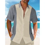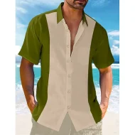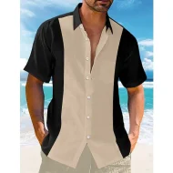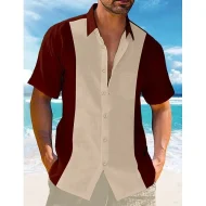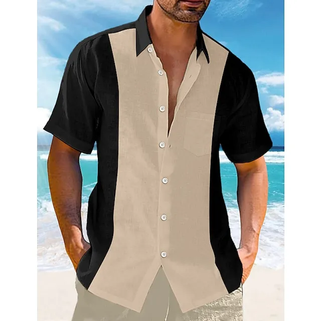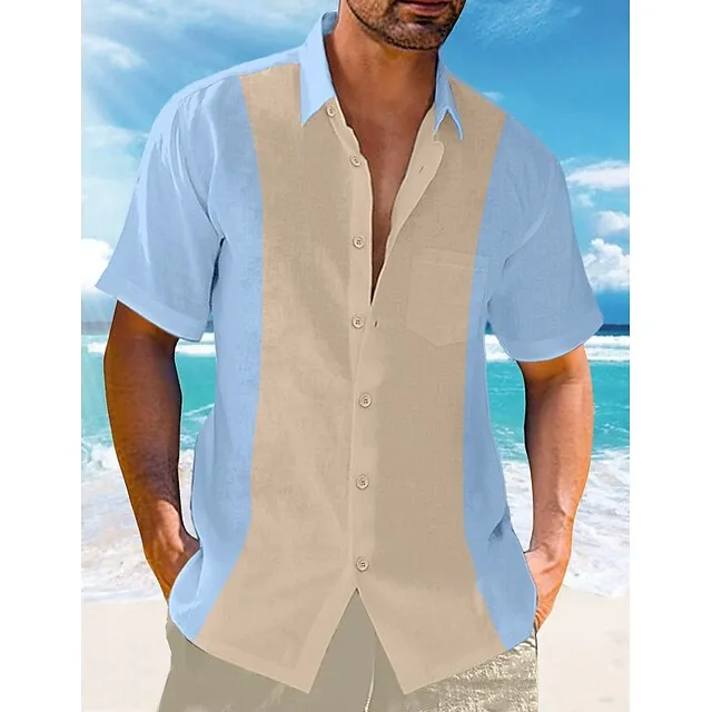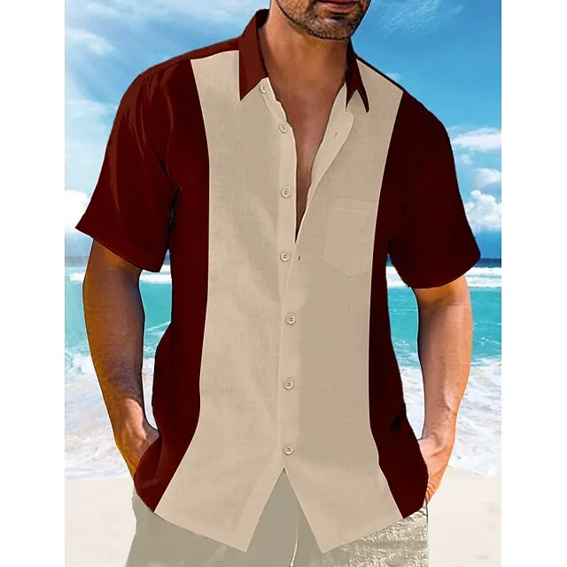 Men’s Shirt Button Up Shirt Casual Shirt Summer Shirt Beach Shirt Black Wine Blue Green Light Blue Short Sleeve Color Block Lapel Daily Vacation Front Pocket Clothing Apparel Fashion Casual
