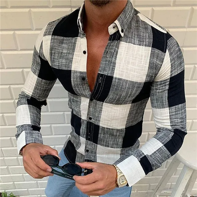 Men’s Shirt Button Up Shirt Summer Shirt Plaid Shirt Black Red Blue Long Sleeve Plaid / Check Collar Turndown Casual Daily Button-Down Clothing Apparel Fashion Casual Breathable Comfortable