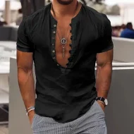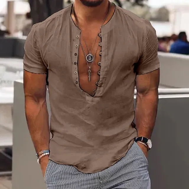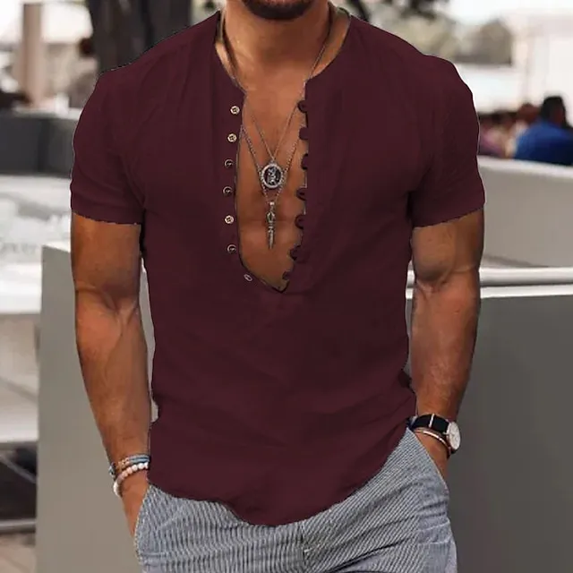 Men’s Shirt Popover Shirt Casual Shirt Summer Shirt Beach Shirt Black White Wine Gray Short Sleeve Plain Collar Street Daily Clothing Apparel Fashion Casual Comfortable