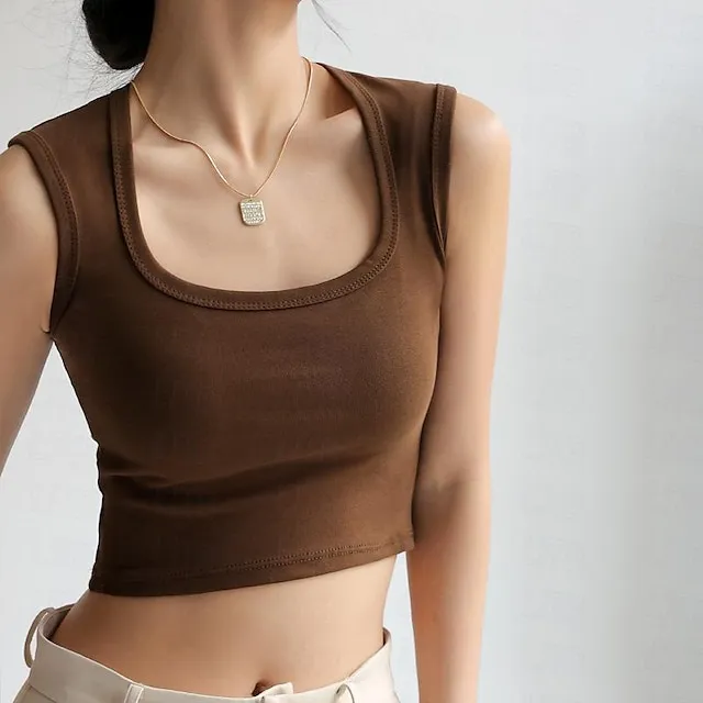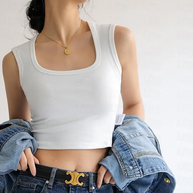 Tank Women’s Black White Army Green Solid Color Crop Top Party Date Fashion Square Neck S