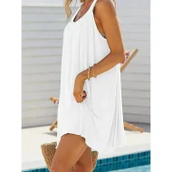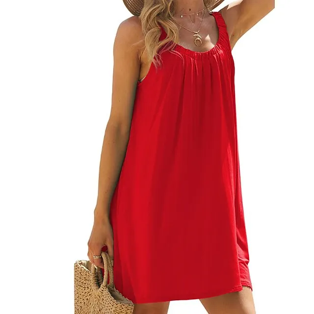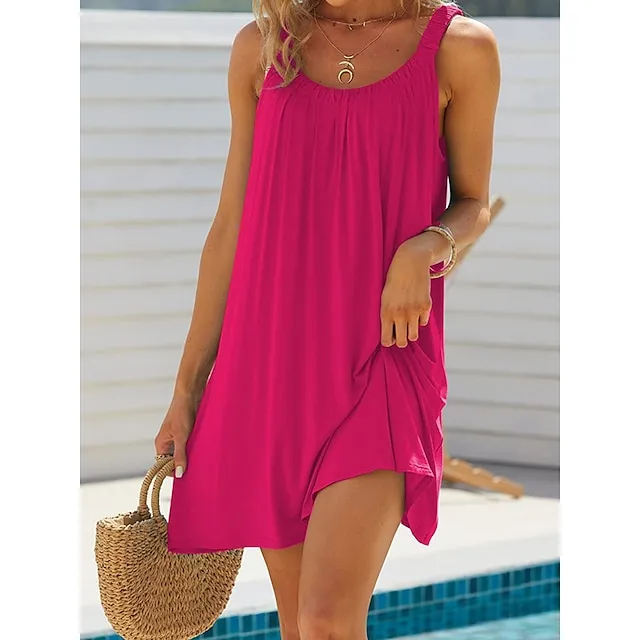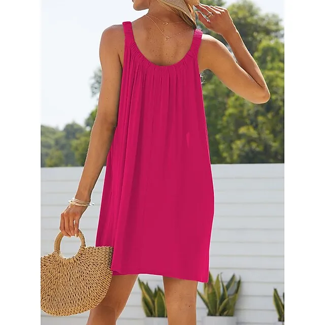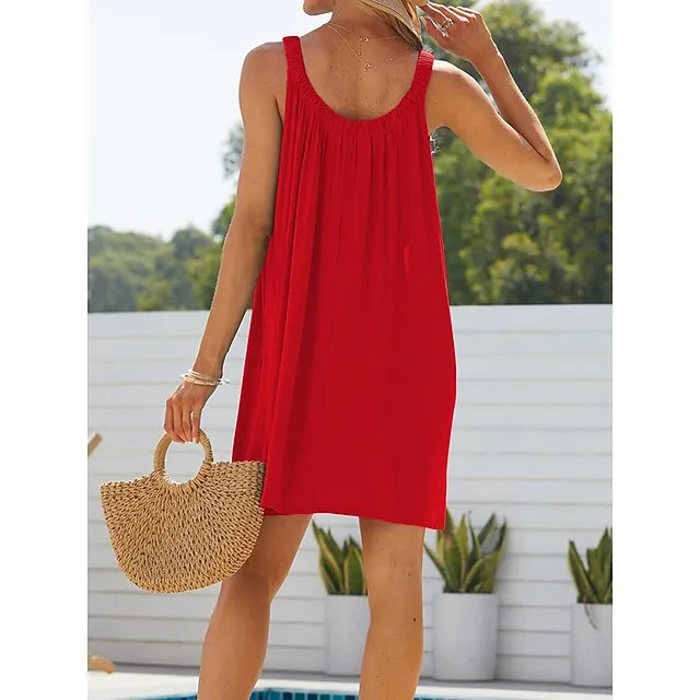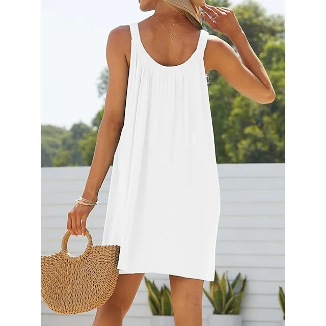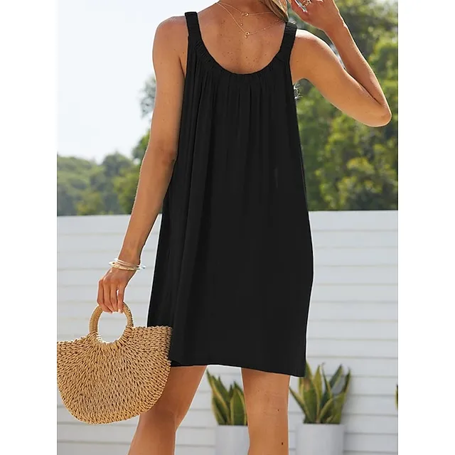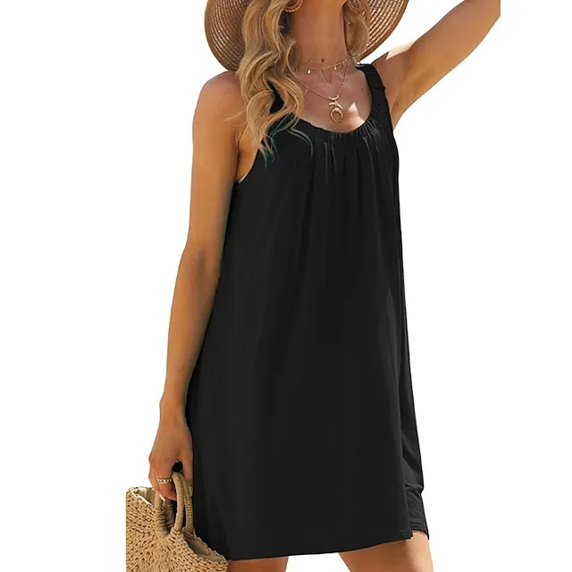 Women’s Beach Dress Beach Wear Mini Dress Ruched Fashion Casual Plain Spaghetti Strap Sleeveless Loose Fit Daily Vacation Black White Summer Spring S M L XL