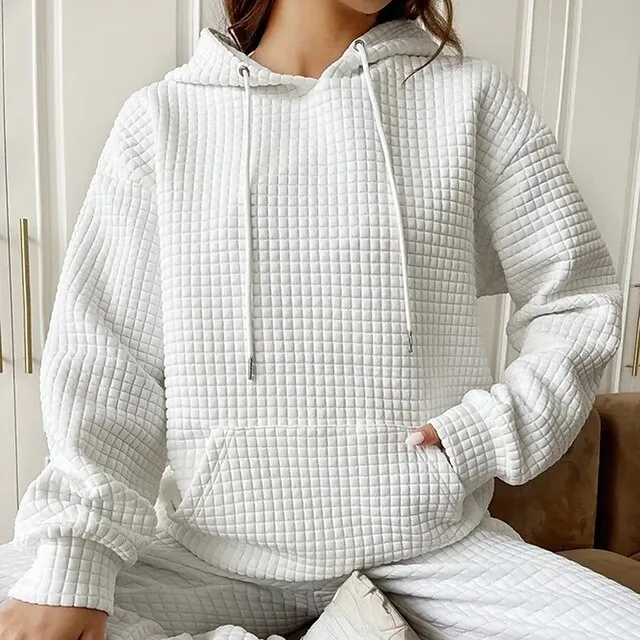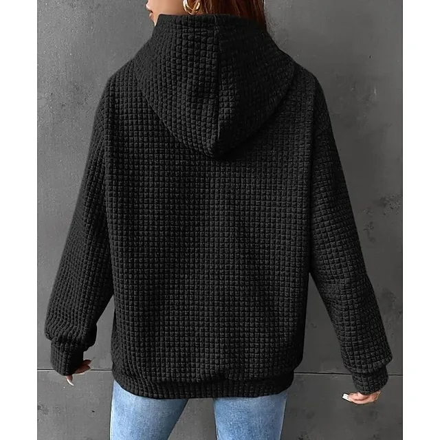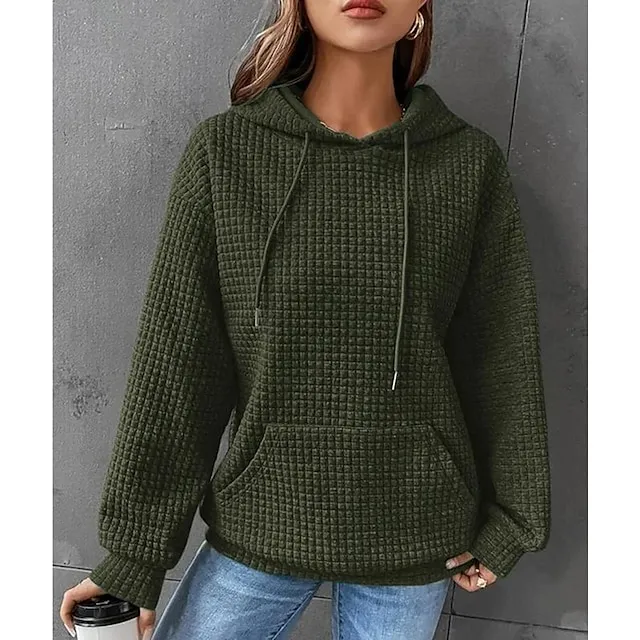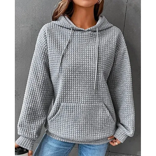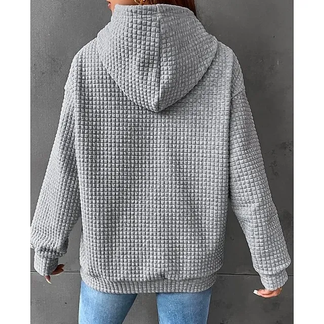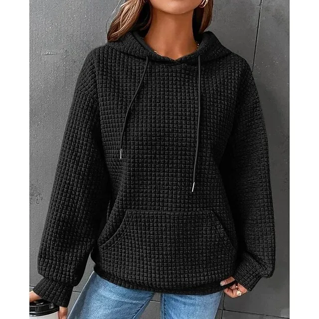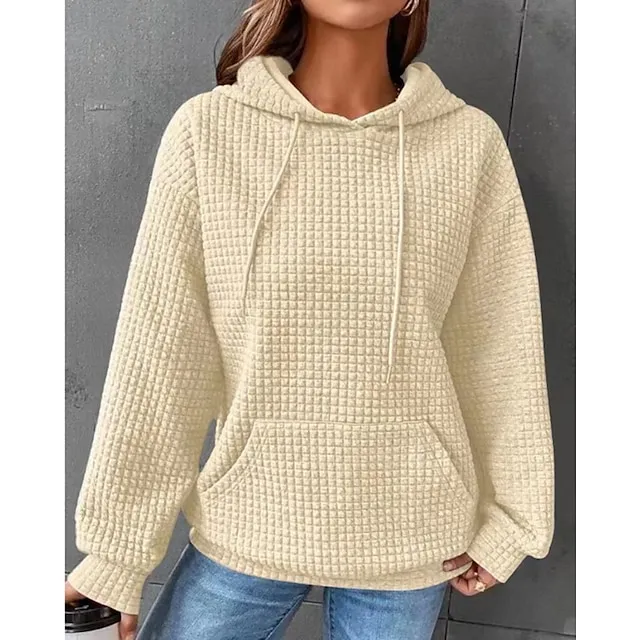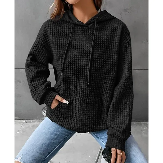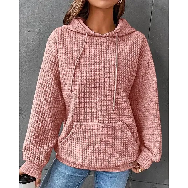 Women’s Hoodie Sweatshirt Pullover Textured Waffle Plain Casual Drawstring Front Pocket Black White Pink Vintage Basic Casual Hoodie Long Sleeve Top Micro-elastic Spring Fall